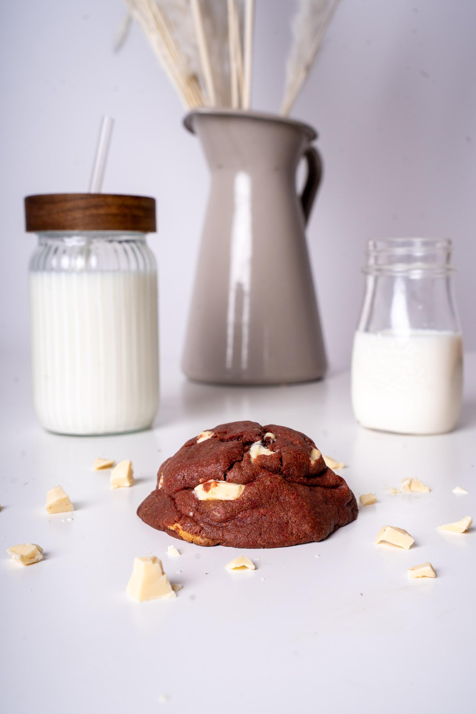 Un clin d’œil aux pâtisseries américaines avec notre cookie Red Velvet fait maison : moelleux, légèrement cacaoté. D’un rouge profond, il est généreusement garni de pépites de chocolat blanc. Le cookie parfait pour les envies sucrées et dépaysantes.